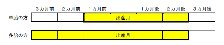 軽減の対象期間 出産月の前月(多胎の場合は3カ月前)から出産月の翌々月まで
